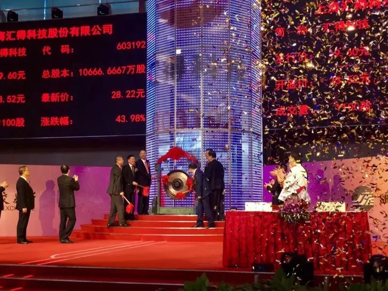 8月28日,协会常务副会长单位上海汇得科技股份有限公司在上海证券交易所挂牌上市,公司董事长、总经理钱建中与到场嘉宾共同鸣锣开市。公司股票简称为“汇得科技”,股票代码为“603192”,此次发行总数约2 666.67万股,网上发行为1 066.6万股,IPO保荐机构为东方花旗证券。