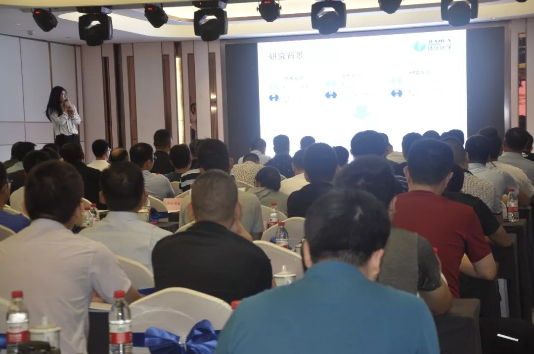 会议中,佳化化学研发工程师李平向与会的聚氨酯制品生产商代表和技术工程师介绍了佳化新一代发泡剂 Greenmate® :“佳化化学新推出的发泡剂——Greenmate®,具有 零ODP(ozone depletion potential,臭氧消耗潜值),低GWP(Global Warming Potential,全球变暖潜能值 )的特点,在使用过程中能够很好的 改善泡沫流动性,同时可 部分或完全替代其他物理发泡剂 ,具有环保、高效的优势”。
