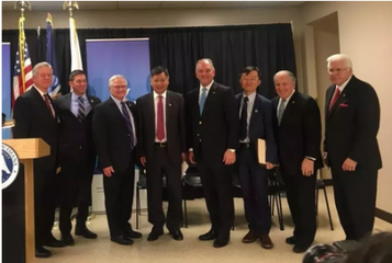李强民总领事(左四)爱德华兹州长(左五)华卫琦博士(左六)